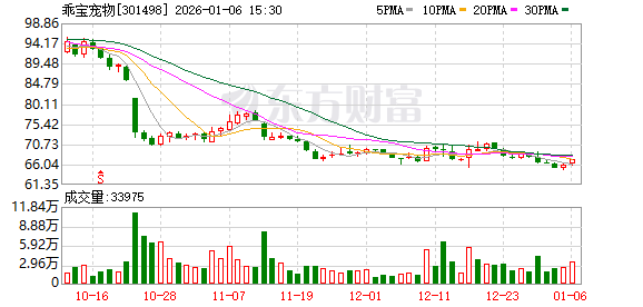 乖宝宠物1月6日大宗交易平台出现一笔成交,成交量88.00万股,成交金额5903.92万元,大宗交易成交价为67.09元。该笔交易的买方营业部为机构专用,卖方营业部为中国国际金融股份有限公司上海分公司。
